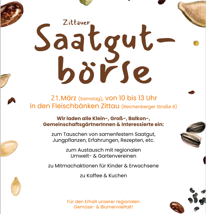 Am 25. März findet die 5. Zittauer Saatgutbörse statt. Wir freuen uns über Ihre Teilnahme!